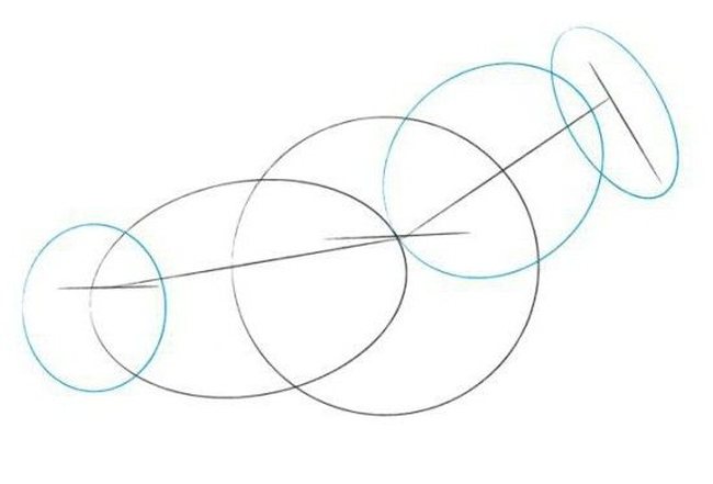 Κάτω από την ουρά με ένα κύμα προς τα κάτω, σημειώστε τη γραμμή του ισχίου. Κάτω από την καμπούρα, σχεδιάστε μια αμβλεία γωνία που δείχνει προς τα αριστερά και τελειώνει με μια διαχωριστική γραμμή, αυτό είναι το μπροστινό περίγραμμα του ποδιού.