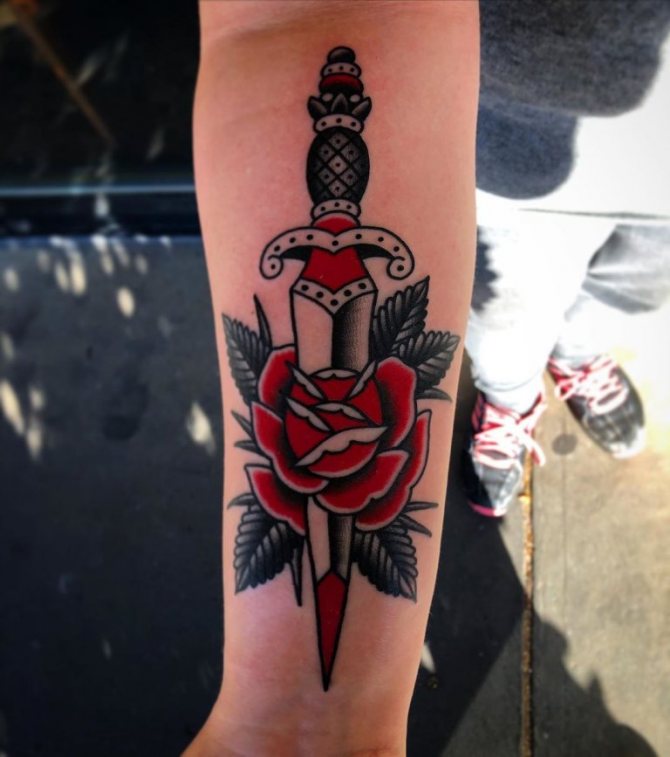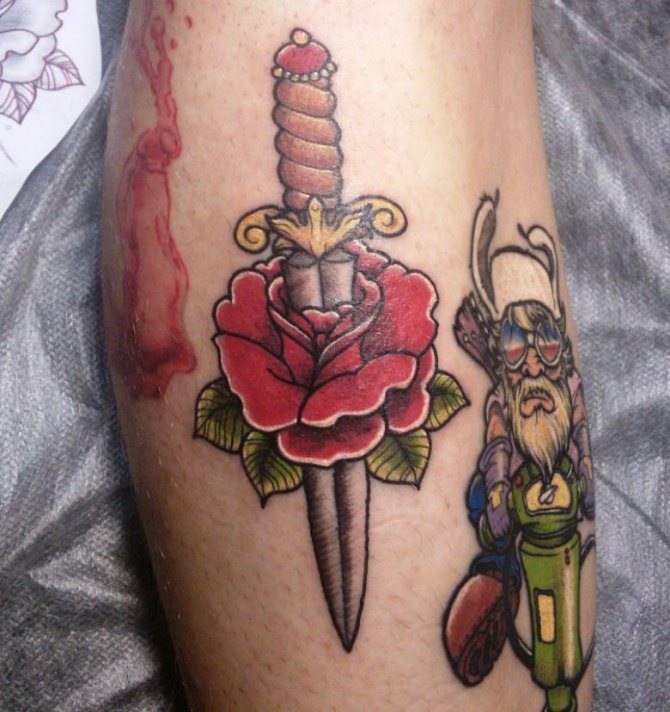Ένα κρύο όπλο που τρυπά ένα τριαντάφυλλο σημαίνει προδοσία. Το άτομο που το έκανε αυτό έχει πληγωθεί νωρίτερα. Εάν στάζει αίμα από τη λεπίδα του μαχαιριού, έχει διαπραχθεί ανθρωποκτονία από ζήλεια. Σε χώρους φυλάκισης, οι κόκκινες σταγόνες χρησιμοποιούνται για να μετρήσουν τον χρόνο για ένα έγκλημα που διαπράχθηκε.