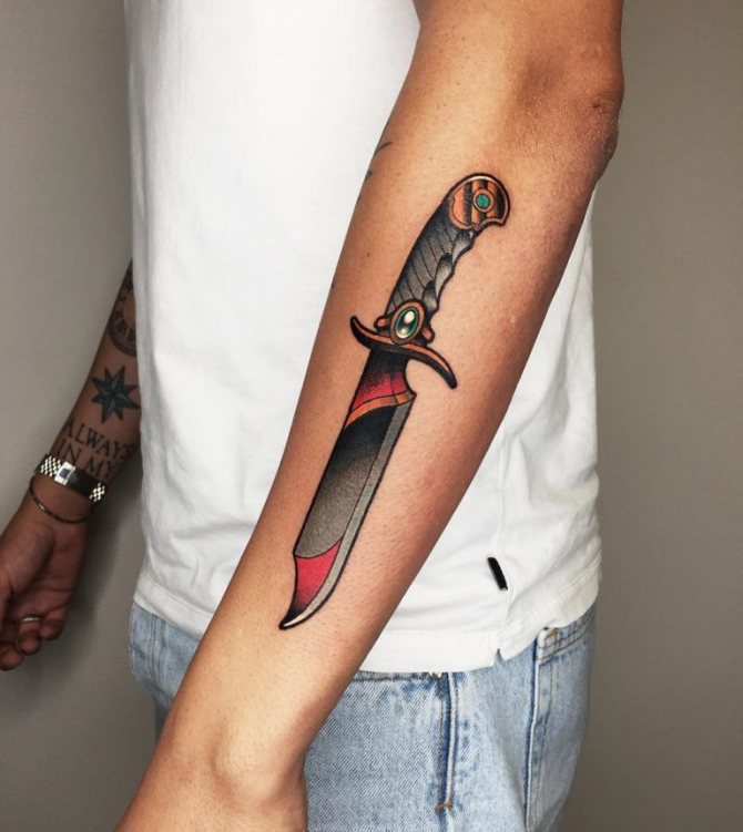 Το μαχαίρι bowie είναι ένα όμορφο τατουάζ, αλλά είναι σπάνιο. Οι ειδικοί έχουν καταλήξει στο συμπέρασμα ότι η εικόνα αυτού του τύπου όπλου στο σώμα αλλάζει τον χαρακτήρα του κατόχου του. Προτού κάνετε τατουάζ, συνιστάται να συμβουλευτείτε έναν δάσκαλο.
