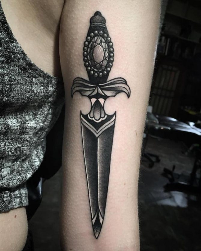 Το μαχαίρι πιστεύεται ότι δίνει στον κάτοχό του τη δύναμη και την ανθεκτικότητα του ατσαλιού. Οι ποικιλίες του μαχαιριού σχεδιάζονται στο σώμα κυρίως από τους άνδρες. Εάν μια γυναίκα κάνει τατουάζ με τέτοιο αιχμηρό όπλο, συνήθως το τοποθετεί σε σημείο κρυμμένο από τα αδιάκριτα βλέμματα.