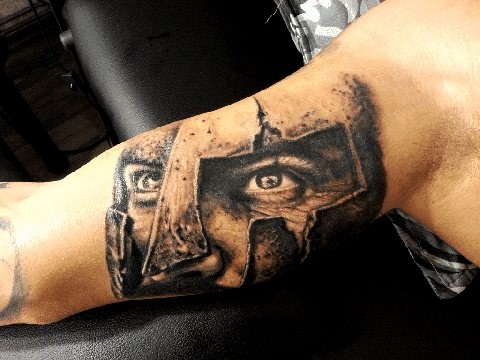 Τα θραύσματα της μάχης φαίνονται υπέροχα σε μια ζωγραφική μεγάλης κλίμακας στην πλάτη ή στο στήθος. Η πανοπλία ή η προτομή ενός μονομάχου εμφανίζεται συχνά στο αντιβράχιο. Βραχίονας τατουάζ χρησιμοποιείται για να σχεδιάσει μια εικόνα της πανοπλίας ενός πολεμιστή σε φυσικό μέγεθος.