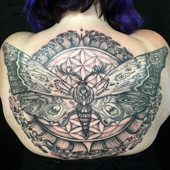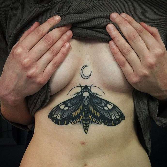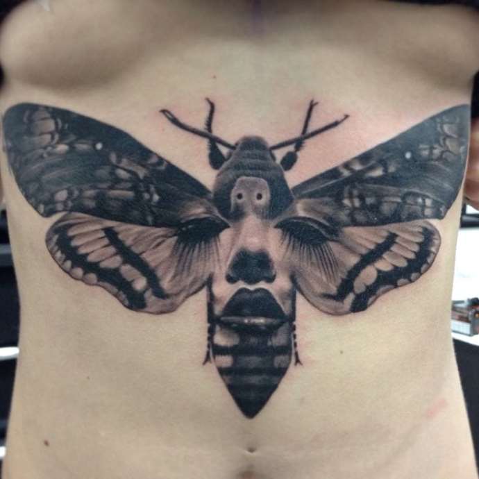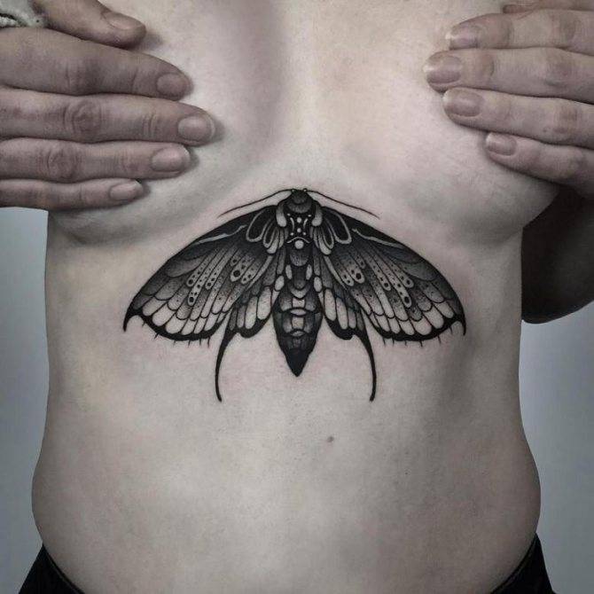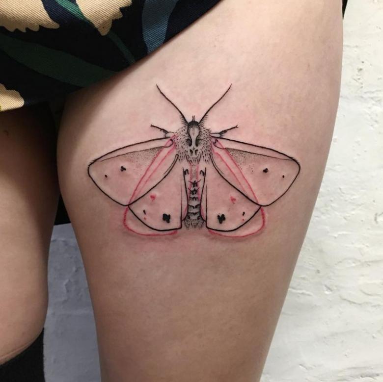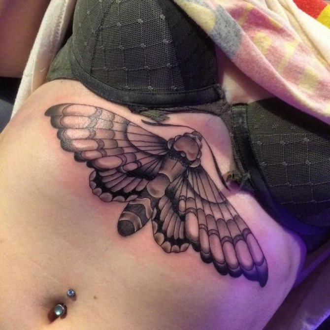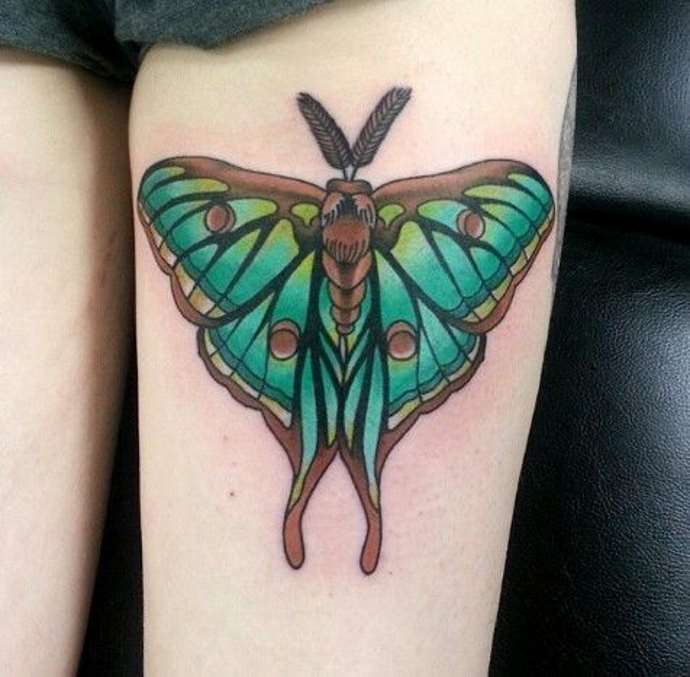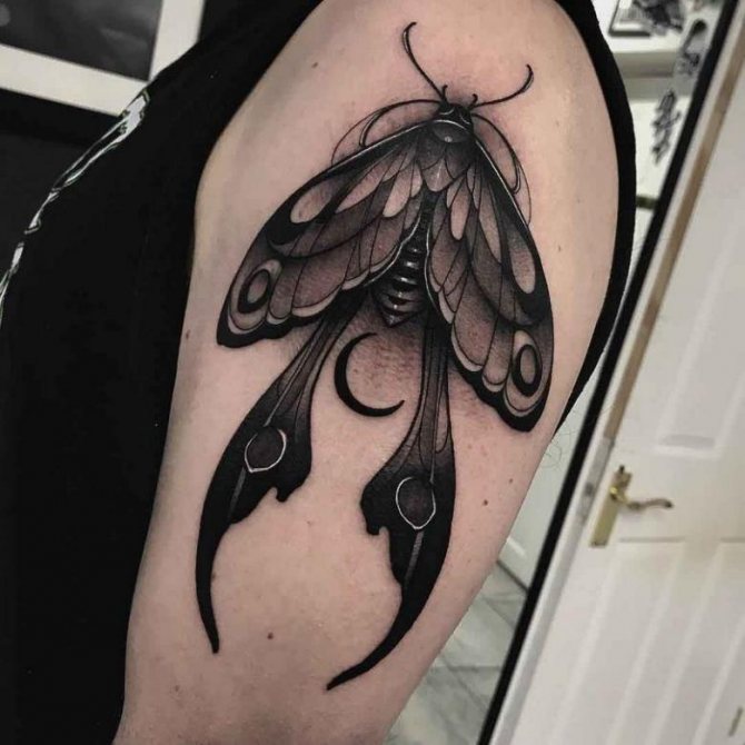 Στους άντρες αρέσει να ζωγραφίζουν ένα σκώρο στον ώμο, την πλάτη ή το χέρι τους. Και οι γυναίκες σχεδιάζουν μια μικρότερη πεταλούδα κάτω από το στήθος, στον καρπό και στην ωμοπλάτη. Πολύ πρωτότυπο τατουάζ στο στυλ του ρεαλισμού. Η ομορφιά των φτερών, τα αστραφτερά χρώματα αποδίδονται από την πολύπλοκη τεχνική του δασκάλου. Φαίνεται ότι το έντομο κάθεται στον ώμο και είναι έτοιμο να πετάξει μακριά.