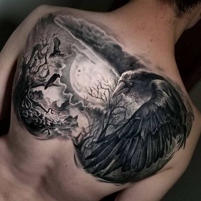 Παρακάτω θα βρείτε μια επιλογή από τατουάζ με κοράκια για άνδρες σε διάφορα σχέδια. Οι φωτογραφίες πιθανόν να σας βοηθήσουν στην επιλογή του μελλοντικού σας σχεδίου.