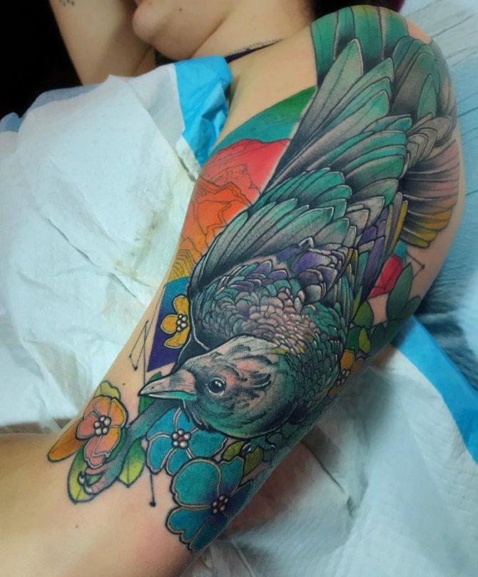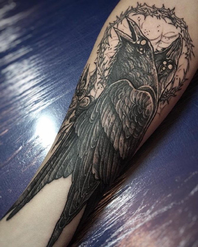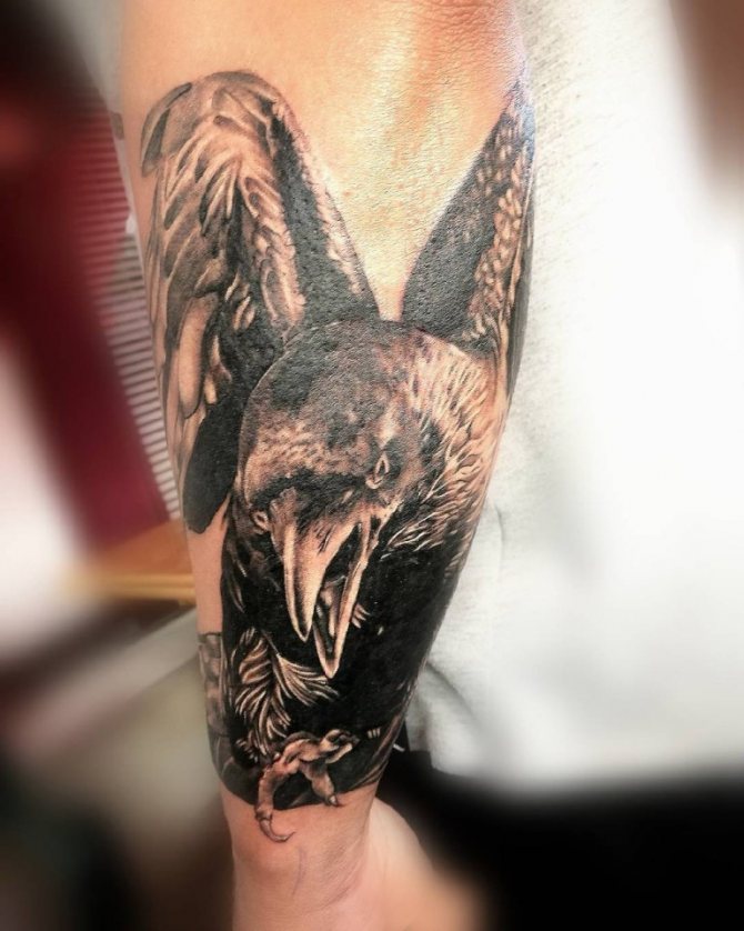 Το τατουάζ κοράκι έχει την πιο αντιφατική εικόνα, η οποία φέρει τόσο θετικές όσο και αρνητικές έννοιες. Όλα εξαρτώνται από το στυλ που χρησιμοποιείται για την απεικόνισή του.