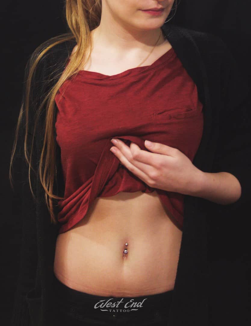 - Κοιλιά. Αυτή η περιοχή επιλέγεται για τατουάζ μόνο από άτομα που δίνουν συνεχή προσοχή στη φυσική τους κατάσταση και διαθέτουν ατσάλινους κοιλιακούς. Οι γυναίκες μπορεί να κάνουν τατουάζ για να κρύψουν την ουλή από την καισαρική τομή.