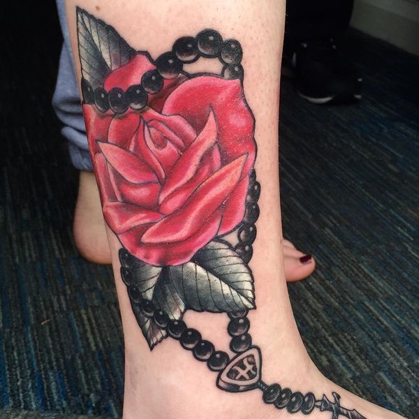 Στον Χριστιανισμό, το τριαντάφυλλο πιστεύεται ότι είναι το αίμα του Ιησού, οπότε η εφαρμογή του μαζί με ένα σύμβολο πίστης έχει βαθιά σημασία. Τα τατουάζ μοιάζουν να λένε: "Είθε η ζωή σας να αγκαλιάσει τα χέρια της Γκρέσιος, όπως αυτές οι χάντρες", αφήστε τις να ξαπλώσουν απαλά ανάμεσα στα χαριτωμένα πέταλα αυτών των θεϊκών λουλουδιών.