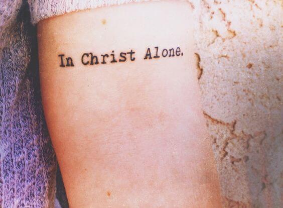 Είναι ένα πολύ απλό αλλά γοητευτικό τατουάζ με στίχους της Βίβλου με φόντο που μοιάζει σαν το κείμενο να είναι γραμμένο σε χαρτί. Γραμμένο με μελάνι στο εσωτερικό του χεριού μιας γυναίκας, είναι μια αναζωογονητική υπενθύμιση του Χριστού σε μια πανέμορφη και κομψά γραμμένη πρόταση τριών λέξεων.