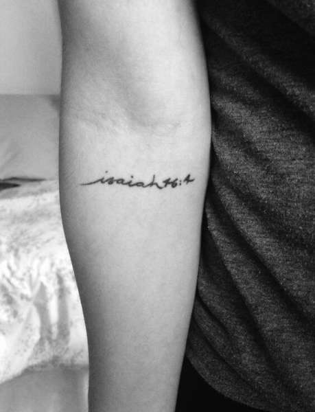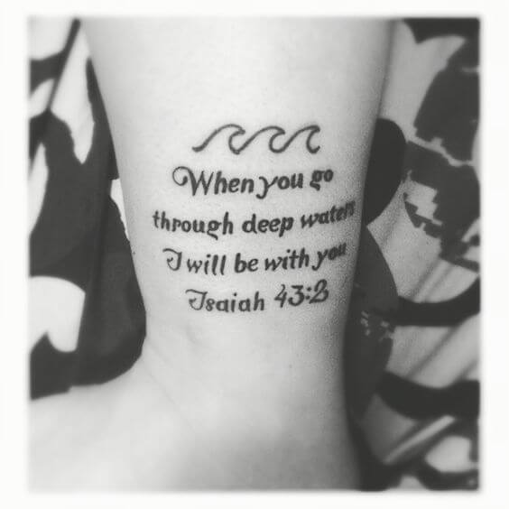 Μια τολμηρή ωδή στο βιβλίο του Ησαΐα για γυναίκες που δεν ντρέπονται για την πίστη τους, οι λέξεις εμφανίζονται κάτω από το νερό σε ένα απλό τατουάζ με βιβλικό στίχο. Τα σκούρα τυπώματα της Αγίας Γραφής ξεχωρίζουν επίσης σε αυτά τα τατουάζ της Αγίας Γραφής για γυναίκες όταν τοποθετούνται δίπλα στη φτέρνα.
