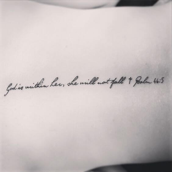 Ψαλμός 46: 5. Υπάρχουν στιγμές που οι νεαρές γυναίκες κατακλύζονται από προβλήματα και ζητήματα στη ζωή και όλα μοιάζουν χαμένα και απελπιστικά, μπορούν να αντλήσουν έμπνευση και ελπίδα από αυτό. Υπόσχεται ότι ο Θεός είναι παρών σε κάθε στιγμή θλίψης. Σίγουρα ένα από τα μεγαλύτερα τατουάζ γραφής για κορίτσια.