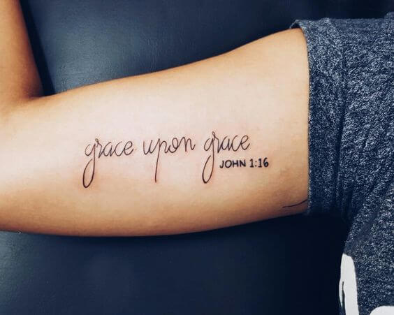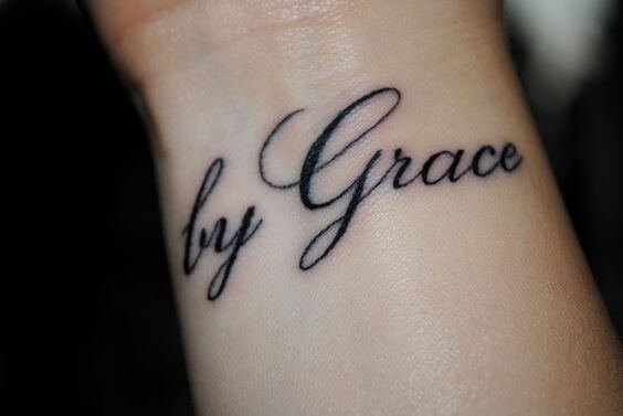 Χάρη στη χάρη. Αυτό σημαίνει την αφθονία της χάρης που δίνει ο Θεός στα παιδιά του. Έτσι, όσο αμαρτωλός κι αν νομίζει ότι είναι ο κάτοχος του τατουάζ, όσο μακριά κι αν έχει πέσει από τη χάρη Του, τον καθησυχάζει ότι μπορεί ακόμα να πλησιάσει τον Θεό. Αυτό είναι ένα από τα πιο απλά αλλά και πιο ισχυρά τατουάζ της Αγίας Γραφής.
