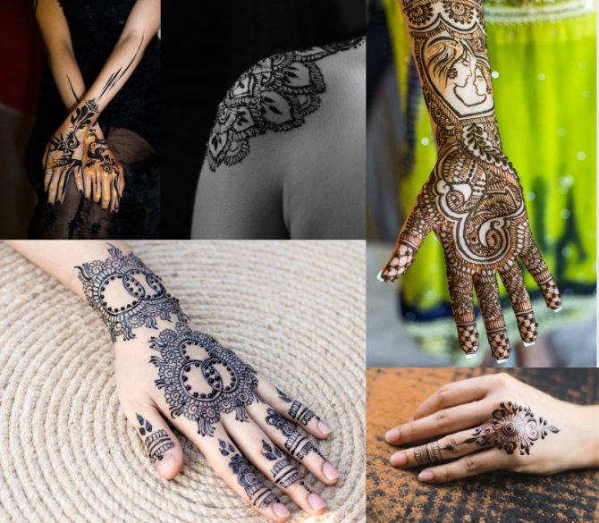 Μπορεί κανείς να ζωγραφίσει οποιοδήποτε σημείο του σώματος με χέννα. Ζωγραφική Mehendi στην κλείδα, στην πλάτη. Τα περισσότερα κορίτσια απεικονίζουν ζώα, λουλούδια ή εξαιρετικές δαντέλες. Χάρη σε αυτές τις εικόνες υπάρχει μια αίσθηση αυτοπεποίθησης, μοναδικότητας.