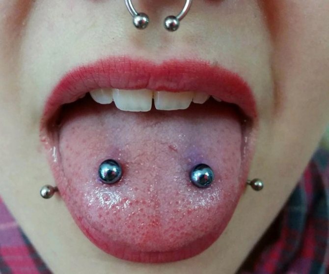 - Επιφανειακό - η γλώσσα δεν διαπερνάται. Αυτή η πολύπλοκη διάτρηση απαιτεί την προσοχή και την επιδεξιότητα ενός μάστορα. Οι τιμές για αυτού του είδους τις υπηρεσίες μπορεί να κυμαίνονται από 1500 έως 4000 RUB.