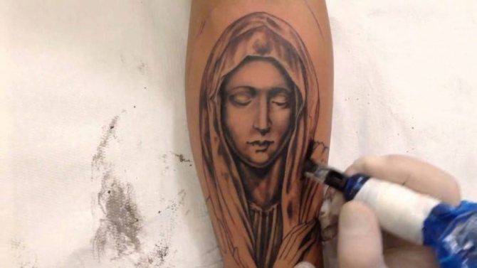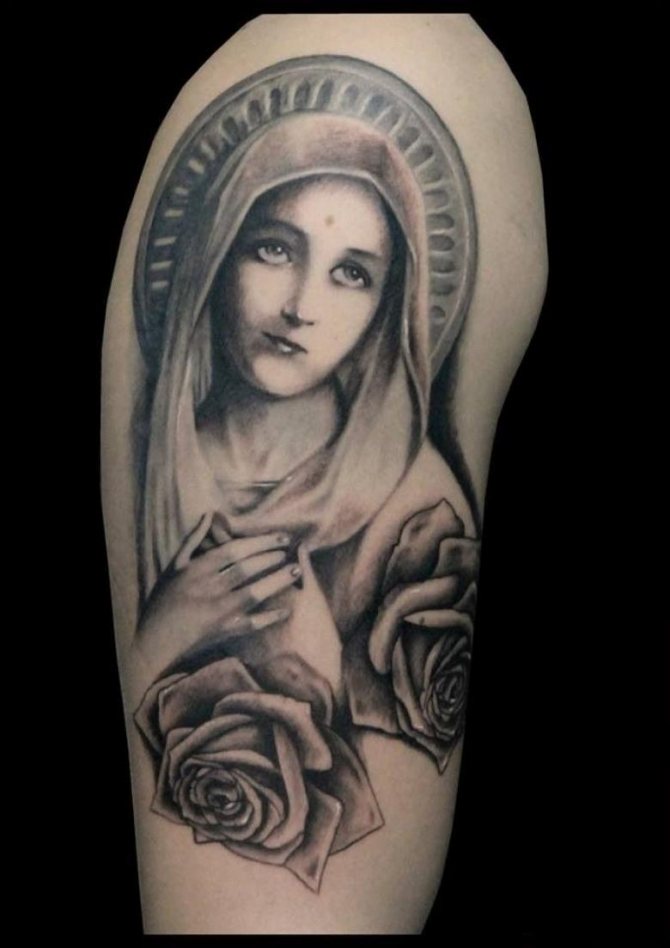 Τατουάζ της Παναγίας μας - Ένα από τα κύρια σύμβολα της χριστιανικής θρησκείας. Μητέρα του Ιησού - γέννησε ένα γιο του Κυρίου ως αποτέλεσμα της άψογης σύλληψης. Είναι σύμβολο αγνότητας και πίστης, κάτι που αντικατοπτρίζεται και στο τατουάζ. Η πιο συνηθισμένη αναπαράσταση είναι το κλασικό τατουάζ της Μητέρας του Θεού. τατουάζ της εικόνας της Παναγίας. Αλλά αυτός δεν είναι αυστηρός κανόνας και επιτρέπονται μη κανονικές εικόνες.
