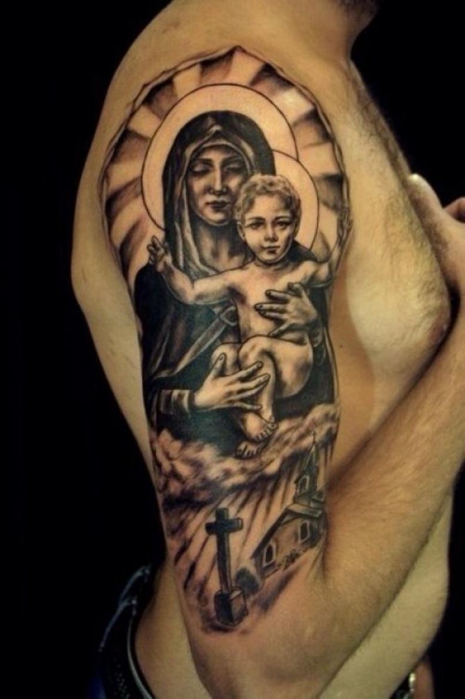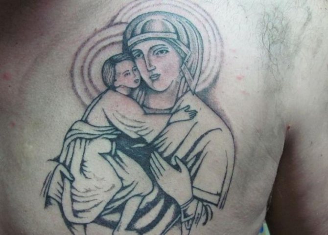 Τατουάζ της Μητέρας του Θεού - μια πλήρης περιγραφή, έννοια και ερμηνεία, πού να γεμίσει, σκίτσα και φωτογραφίες των έργων