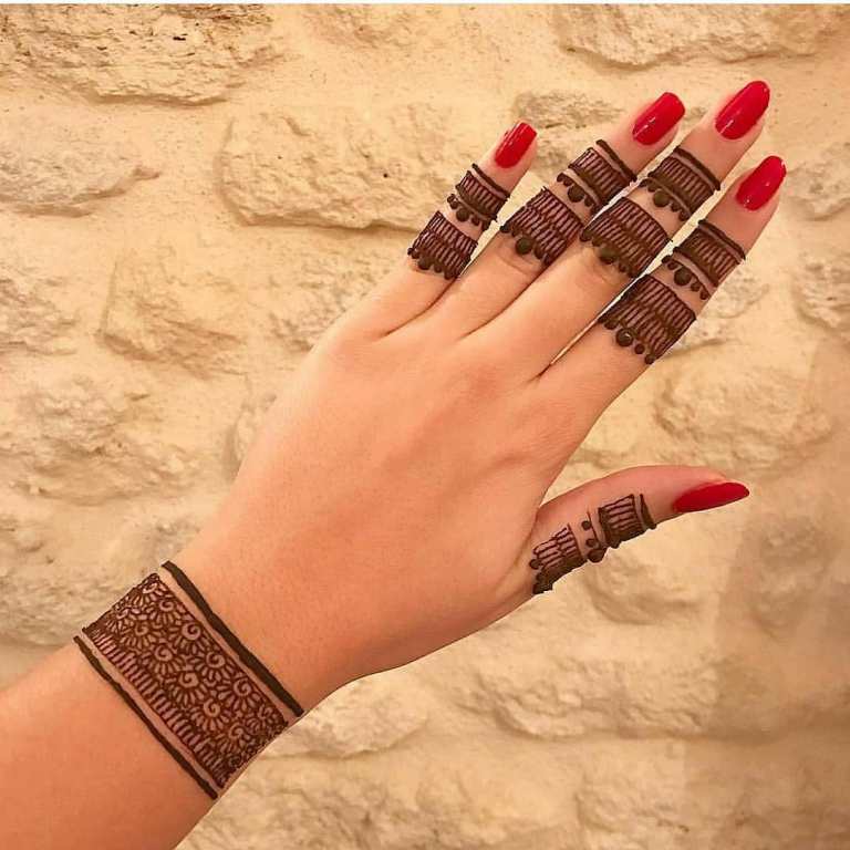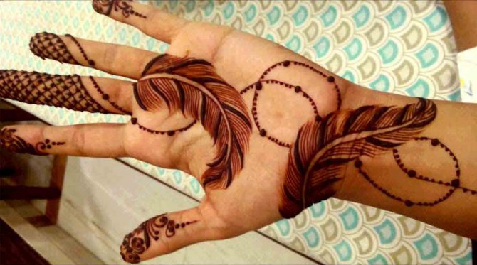 Τα χέρια είναι το σημείο στο οποίο εφαρμόζονται συχνότερα τα σχέδια χέννας. Αυτό οφείλεται στην προσβασιμότητα αυτού του μέρους του σώματος στο μάτι, στην ευκολία σχεδίασης του σχεδίου και στην υψηλή αισθητική των σχεδίων mehendi στα χέρια. Ταυτόχρονα, κάθε εικόνα, είτε πρόκειται για ένα λευκό mehendi με τη μορφή αφηρημένου μοτίβου είτε για ένα φωτεινό σχέδιο με ινδουιστικά σύμβολα, έχει το δικό της νόημα.