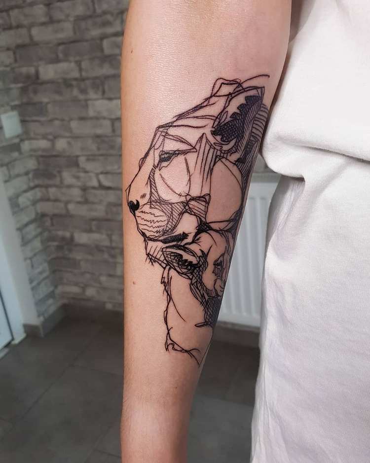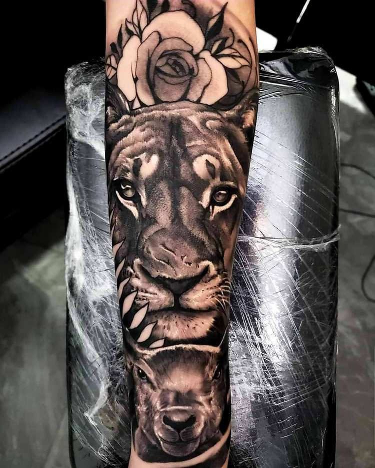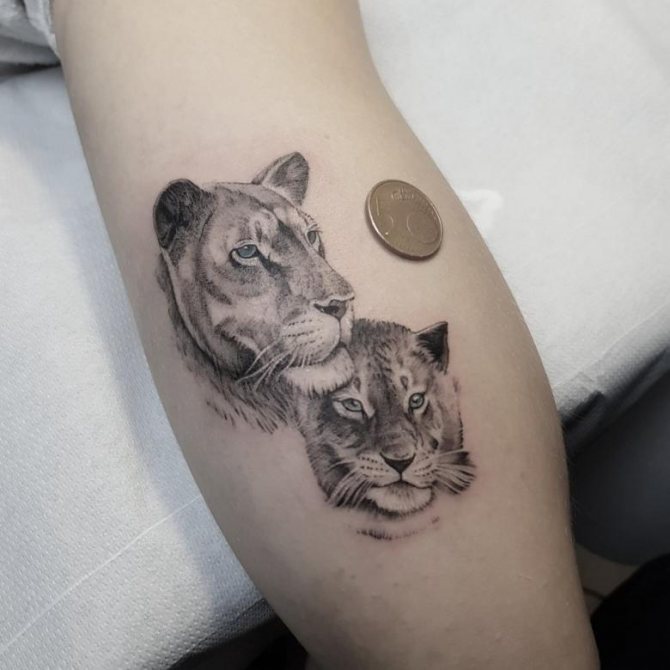 Τατουάζ μιας λέαινας με ένα μικρό λιοντάρι