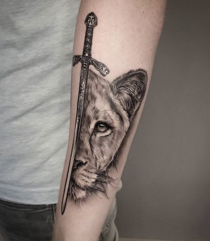 Το τατουάζ λιοντάρι στο χέρι σας: νόημα για άνδρες και κορίτσια