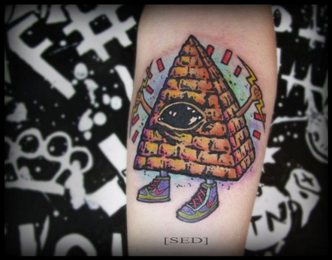 Στα εργαστήρια τατουάζ, θα σας προσφερθούν πολλές επιλογές για σχέδια τατουάζ της πυραμίδας με ένα μάτι. Εξάλλου, ένας έμπειρος δάσκαλος γνωρίζει πολλά γι' αυτά τα πράγματα και θα σας βοηθήσει να επιλέξετε την κατάλληλη εικόνα για εσάς.