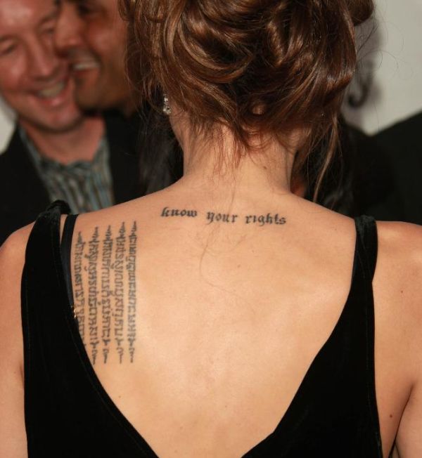 Η Angelina Jolie συνηθίζει να ζωγραφίζει εικόνες στο σώμα της από τότε που ήταν παιδί. Και από τότε, συλλέγει τατουάζ στο σώμα της. Επιπλέον, όλα έχουν κάποιο νόημα ή γίνονται προς τιμήν κάποιου γεγονότος. Ας ρίξουμε μια ματιά στα πιο ενδιαφέροντα τατουάζ της.