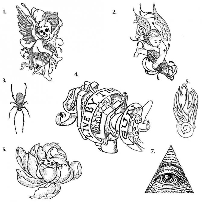 Drawings and designation of thieves tattoos