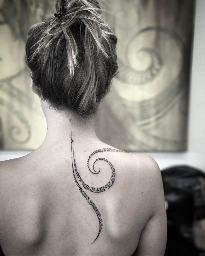 Tribal is one of the first monochrome styles, which is still relevant in the world of body painting. Such tattoos are performed in a concise black and white color, and the concept of images goes back to the ancient traditions of the Maya, Maori and Polynesian tribes.