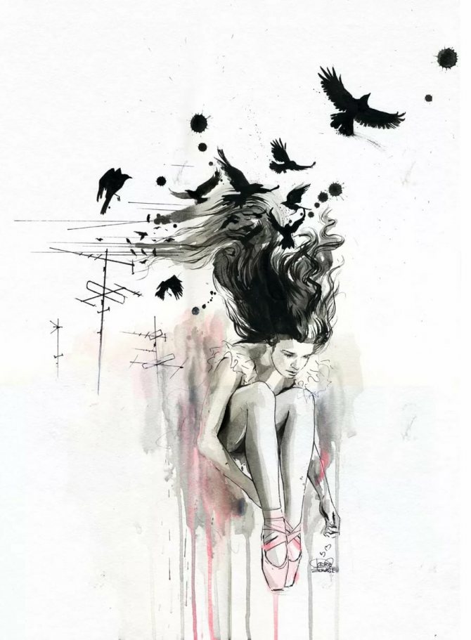 Even watercolor images, so popular among girls thanks to the fabulous palette and non-trivial sketches, look cool in black and white tones.