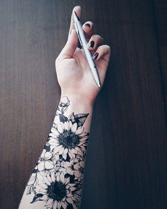 Not everyone likes to cover the body defiantly large ornaments, giving preference to neat drawings in black and white style. Such small tattoos can be done on the wrist, ankle or lower back.