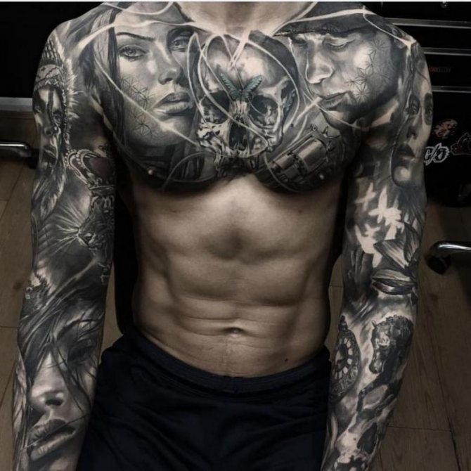 Black and white tattoos are in no way inferior to motley body art.
