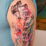 Tattoo with watercolor elements favorably emphasizes creativity and charisma of the wearer. Often printed on the forearm.