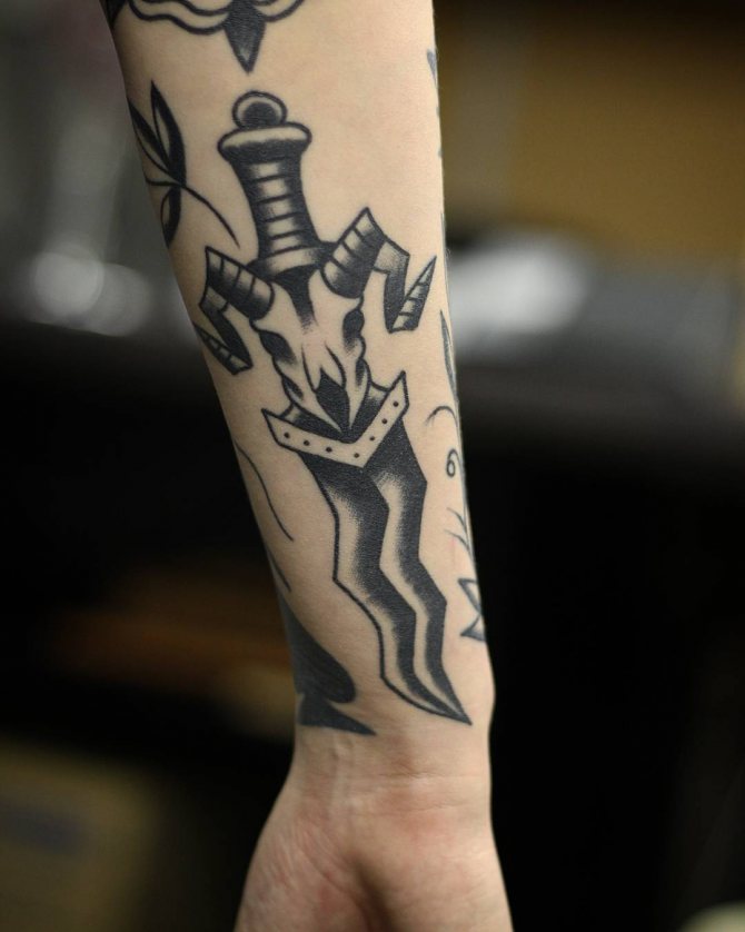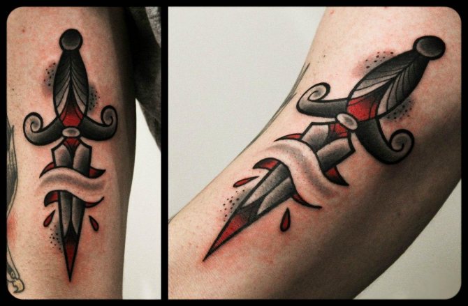 Tattoo with a knife, dagger or sword appeared quite recently. It can become a reliable talisman, protect from the evil eye, bring meaning and direction to life, emphasizing the strengths of its owner's character.