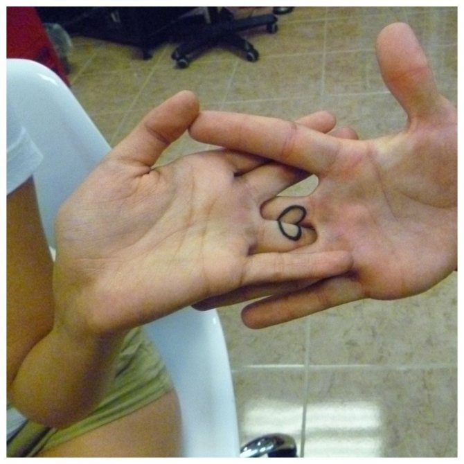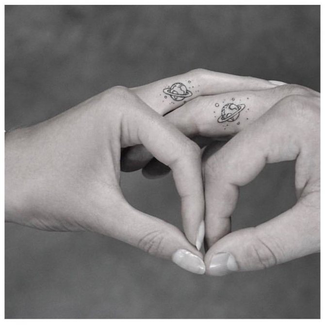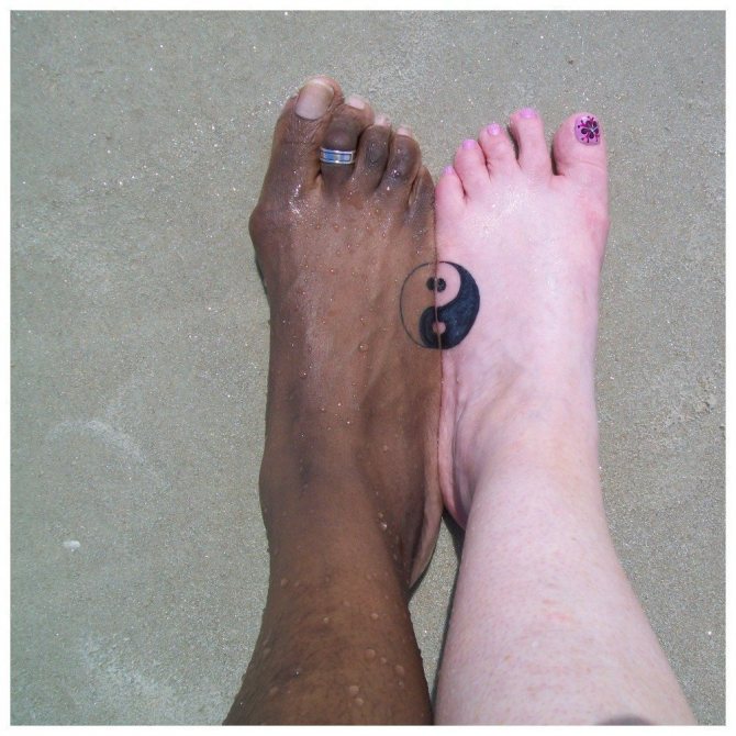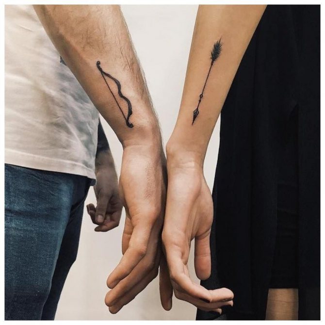 Others choose paired tattoos for husband and wife with meaning, because they understand the seriousness of such a step. The tattoo in this case can be simple, a simple drawing or inscription, but for them it has a great meaning.