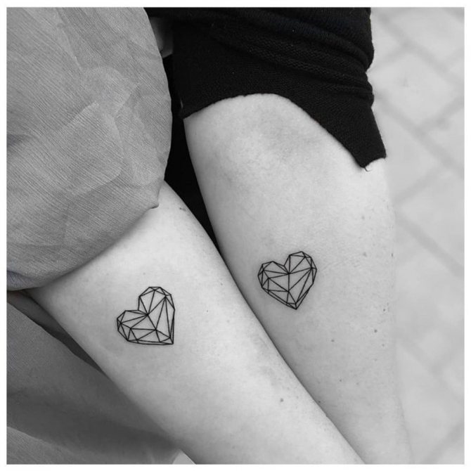 Of course, the friends who decided to get a tattoo are probably close in spirit. In such a case, there are almost always common interests, stories and adventures. It is these that are mostly used as the basis for creating a drawing. The most popular option is the same drawing for two people. This emphasizes the fact that friendship is important to you and plays a big role in your own life. As a rule, in this case, girls choose pictures and symbols that denote friendship or strong family ties. It can also be something meaningful, known only to you. Popular and simple, concise drawings, such as hearts, stars, crowns, geometric shapes and more.