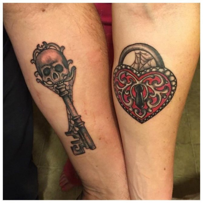 Paired tattoo for husband and wife on the arm as a sign of fidelity to each other