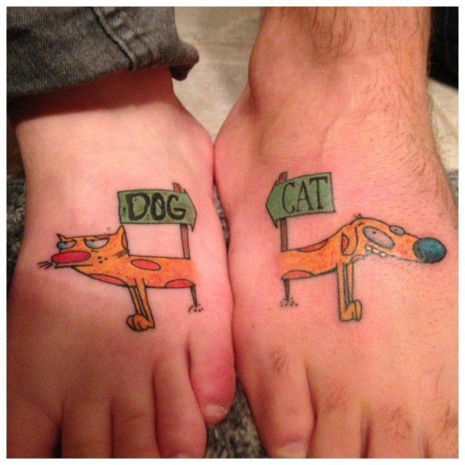 Lovers often give special attention to tattoos. Feelings are heightened and one wants to swear allegiance to the loved one for life, even through a tattoo. In this case, preference is given to spontaneous ideas, crazy and even daring.