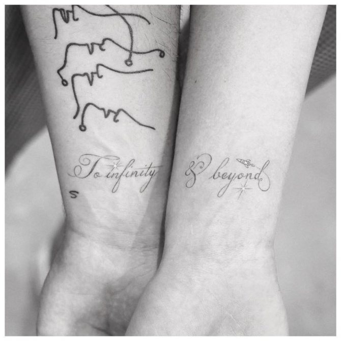 Creating an individual inscription for tattoos, lovers should listen to themselves and their inner voice. Show a little imagination with your lover, and then a simple drawing will carry a special meaning for you.