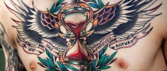 Inscriptions are the classics of tattoos. Both men and women do them, and on the most unexpected parts of the body. However, unlike women who prefer minimalism in tattoo inscriptions, men more often add them to more extensive drawings.
