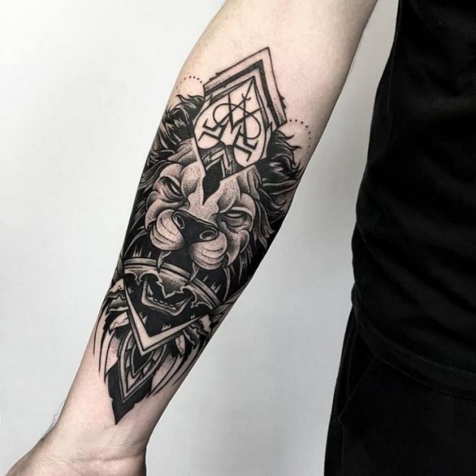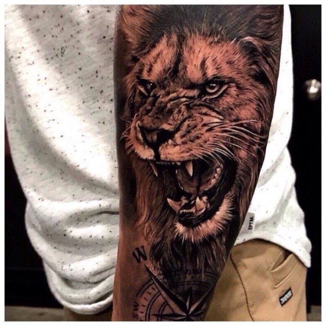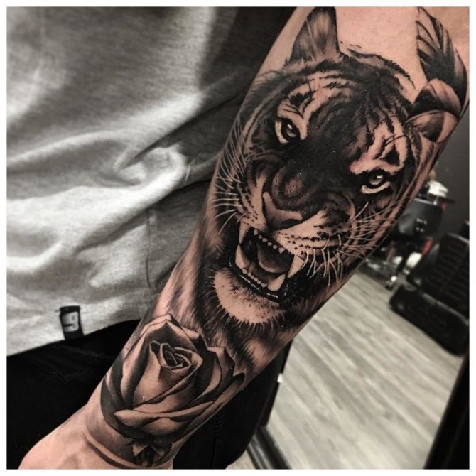 For tattoos on the forearm men choose both real animals and mystical ones. Predator symbolizes strength and determination, the desire to win. It is also important to know the meaning and character of the chosen animal to endow yourself with the same qualities.