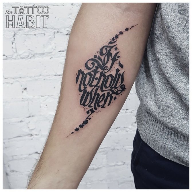 Tattoo inscriptions are preferred by men who want to make a direct statement about their position in life. A drawing in this case is not enough for them, because it can be interpreted differently.