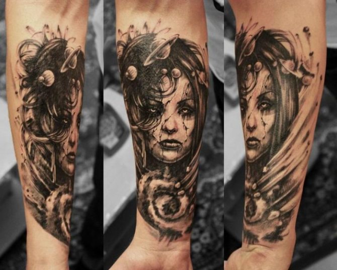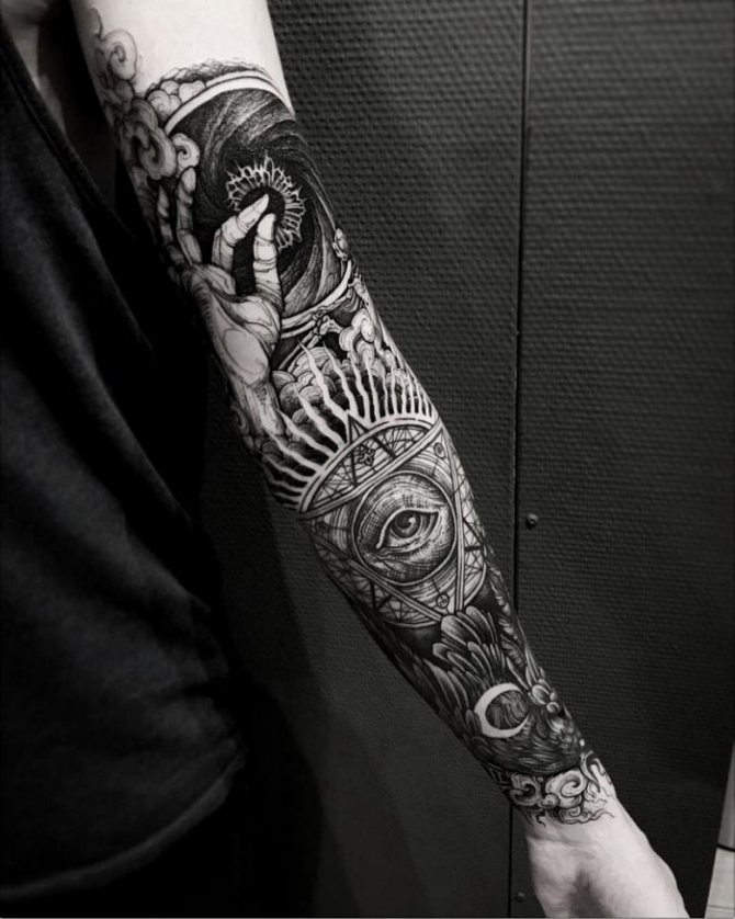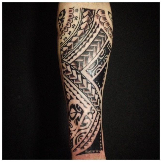 Special meaning such tattoos do not carry. They often cover the entire forearm, performed in black. To hide such a picture will be difficult, even if you change your mind. Therefore, before its padding, it is worth to weigh all the pros and cons.