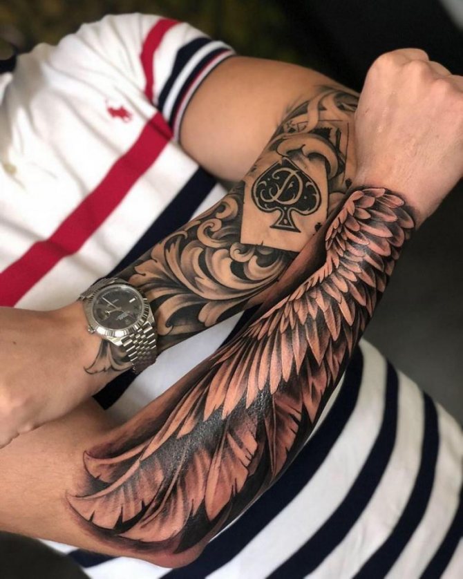 Men like to stuff themselves with tattoos. It looks beautiful, very masculine and modern. The most favorite place for tattoos in men is the forearm. You can decorate this part of the body as a small neat tattoo or a large animalistic tattoo.