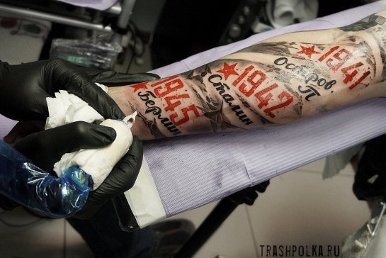 Clients tattoo salons, nostalgic for a bygone era of the USSR, can choose a sketch of a natal drawing on the appropriate subject. Today such pictures most often attract the attention of the older generation. However, tattoos from the Soviet Union can also be found among young people, who have not had time to live in the Soviet state, but yearn for the former might of the country.