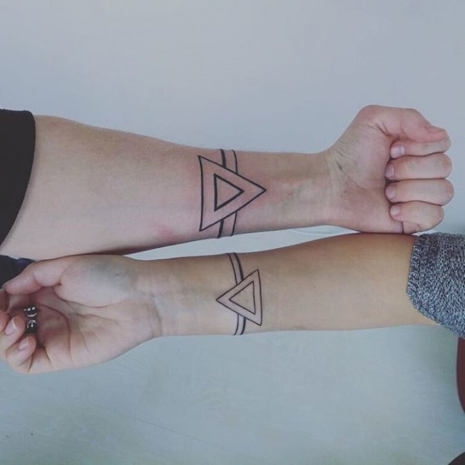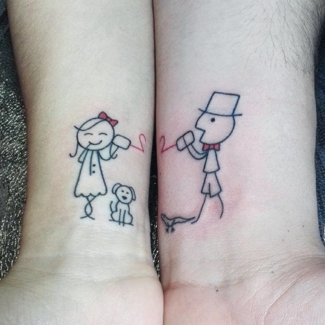 It will be best if you find exactly the tattoo that will most accurately characterize your togetherness. This can be a picture of flame, birds in flight, blossoming branch of an apple tree, amulet and other symbols.