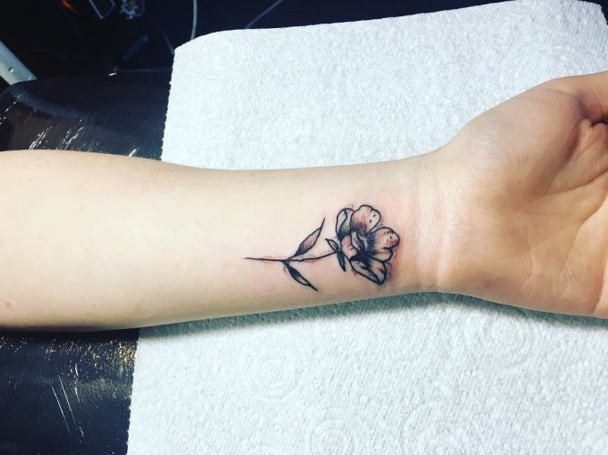 If you do not tolerate pain, choose a small drawing that does not require the drawing of small details and shadows - in fact, for the application of a small tattoo on the wrist for a girl will need no more than 5 minutes.