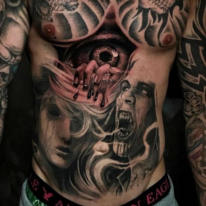 It should be noted that tattoo artists create their delightful 3d tattoos thanks to their natural gift and creativity. They are constantly engaged in self-development and self-improvement, practicing day after day the technique 3d tattoos on clients. Not every tattooist will undertake a large-scale 3d project on the body, but if he challenges himself, everything and always works out. It can be angelic wings all over the back, stretching for miles, a forest and its inhabitants, an abstraction occupying 50% of the human body. We offer to evaluate the best large works in 3d technique in body painting.