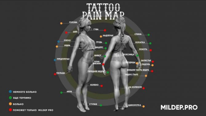 Chest. Another large-scale canvas that often becomes the setting for amazing sketches. If you look at the diagram about sick tattoos, you can see that this area is not so brightly colored. This means that an anesthetic procedure may not be necessary.