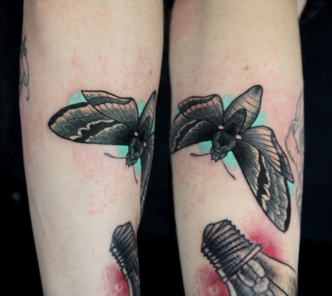 The grace of these creatures attracts lovers of simple tattoos. Butterflies symbolize grace and tenderness. The tattoo is suitable for people "fluttering" through life, easy to relate to failures and troubles. The butterfly is associated with both immortality and transformation of the soul.