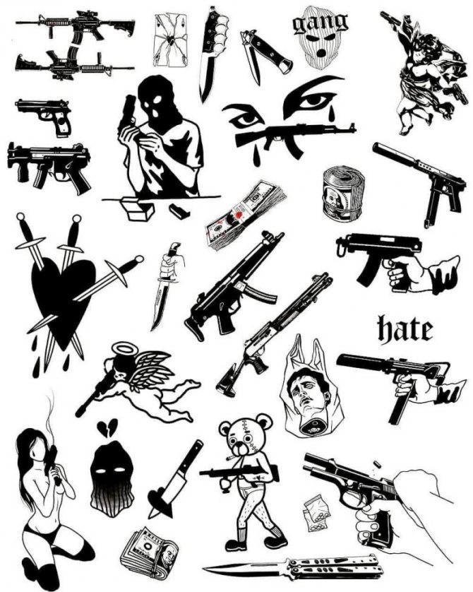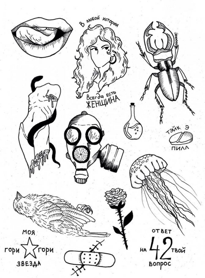 You can see what the sketches of such images look like. Some of them are more suitable for the weaker sex, others will look more advantageous on men.