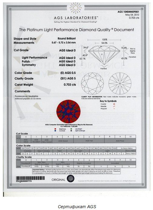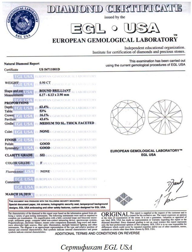 Overseas, diamond certificates are issued by several organizations. Documents of the highest level of credibility are issued by: