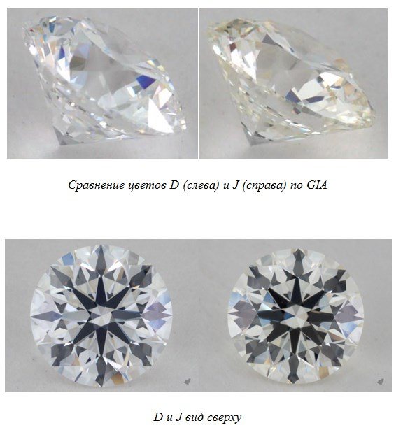 An example of the difference between a D-color and a J-color stone.