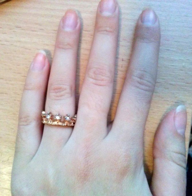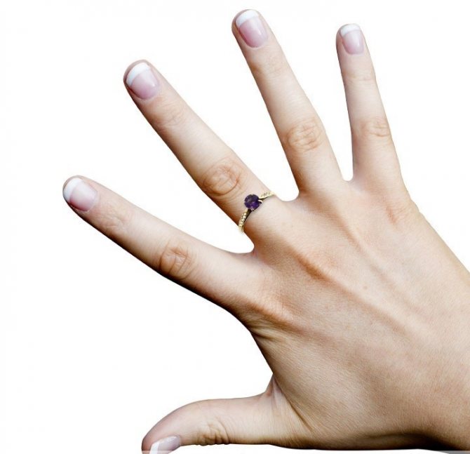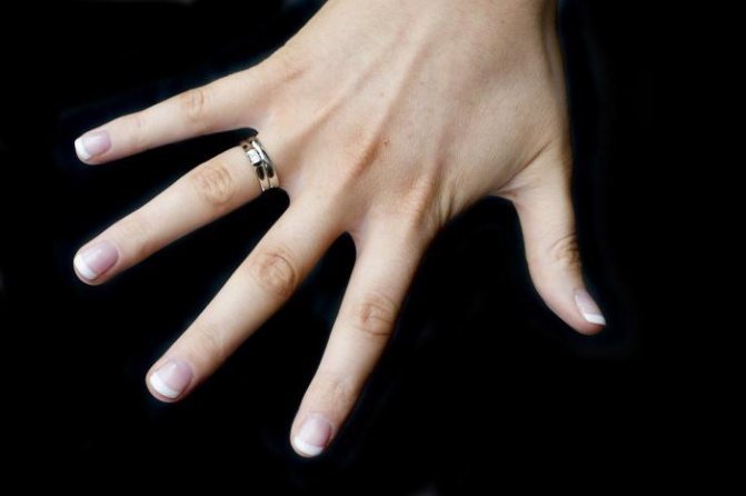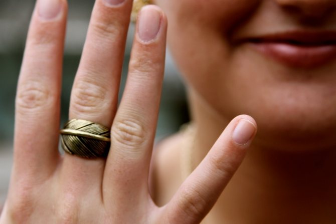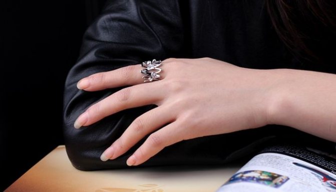 A small, small ring on the ring finger indicates that the girl is a confident person and balanced in herself. If a large, massive ring is worn, it indicates that the girl is passionate and can behave violently. But the first thing worth noting is that rings are worn on this finger by couples in love who have tied the bonds of marriage. Why the ring finger? Because it is the artery of love that runs through it. But in any case, nowadays, it is possible to wear a ring on the ring finger even for those who are not married.